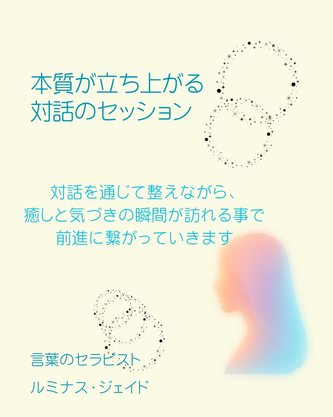 自分自身を深く理解し、本質的な対話を通じて新しい自分に出会う特別な時間があなたを待っています!この体験を通じて、あなたの内なる声を聴き、ポジティブな変化を促すきっかけを作りましょう。